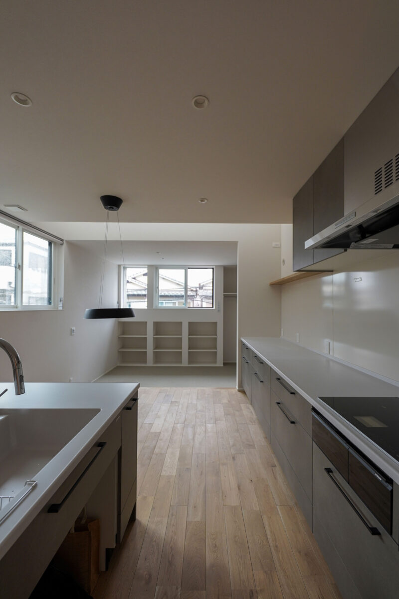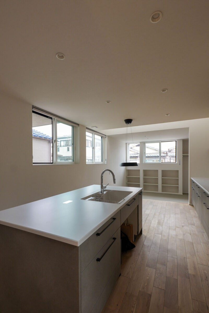 シンク側に立った際にも正面の窓から景色を眺めることができ、開放感のある気持ちの良い配置です。