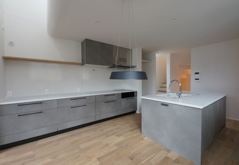 ダイニング・キッチン間でのコミュニケーションも取りやすく、家族との会話が自然に生まれるキッチンとなっています。