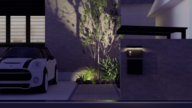 サイクルポートの前には門壁を設け、ワンクッション挟むことで外部からの視線をコントロールしています。