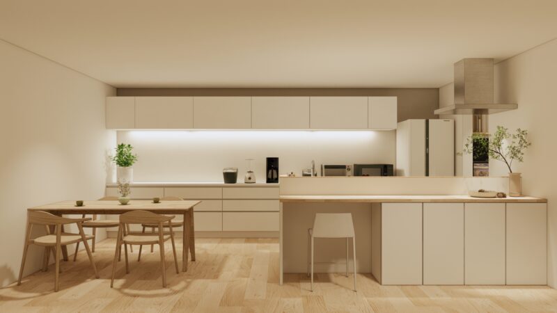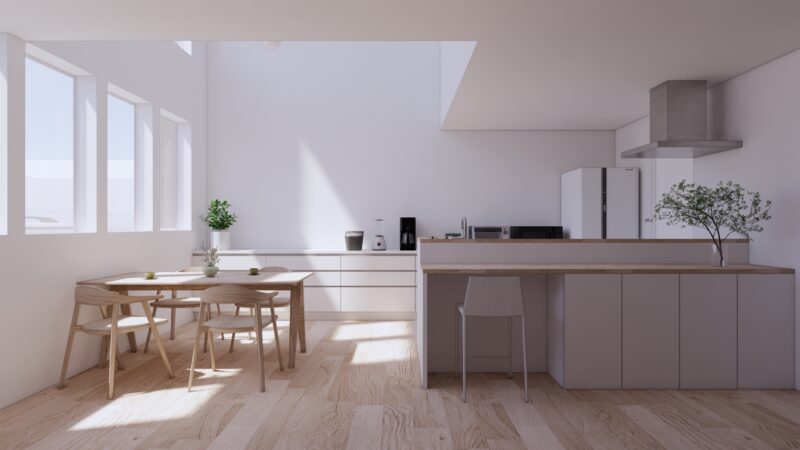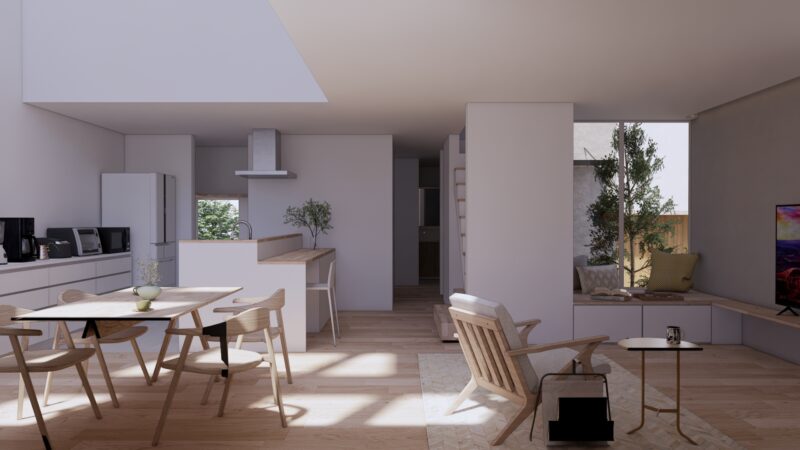 家族がそれぞれの距離感で過ごせる、ワンルームでありながら居場所が分かれるLDKです。