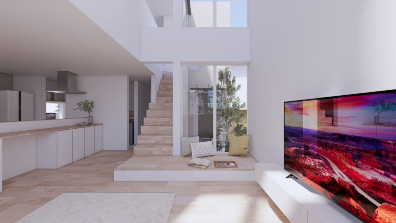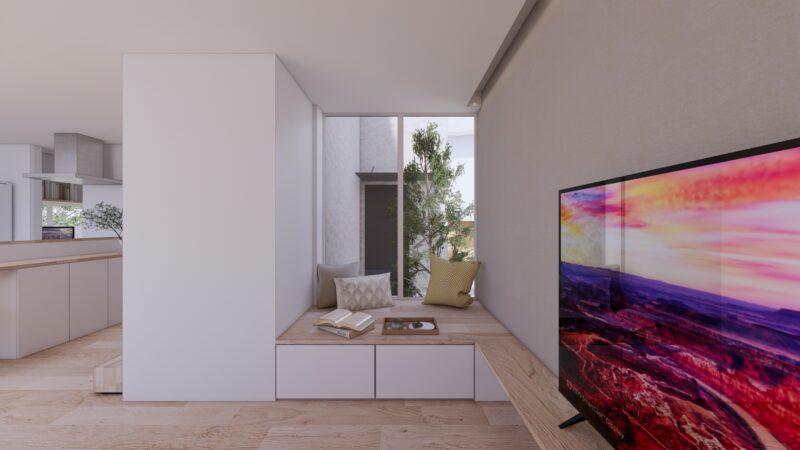 ヌックは壁を抜いて、LDKにもう少し開いた小上がりスペースへ。