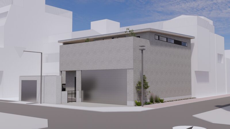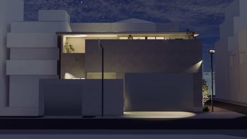 自動車4台分を駐車できるビルトインガレージを備えた2階建てパッシブデザインハウスです。