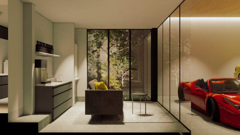 単なる「車庫」ではなく、暮らしの中に趣味を溶け込ませる空間として計画しています。