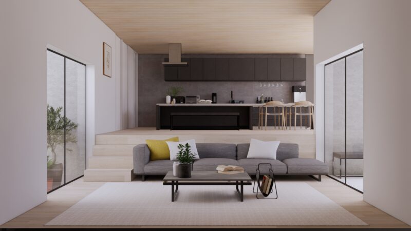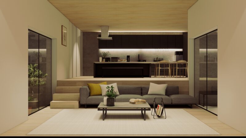 2階にはフロアの高さによってリズム感を生み出したLDK。