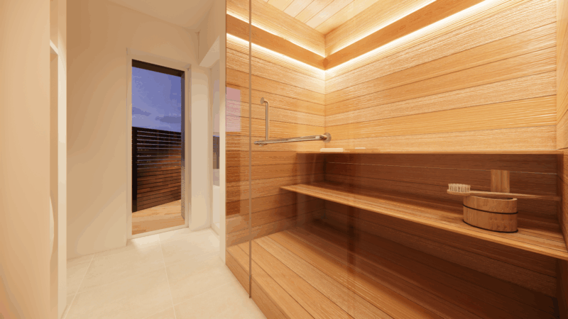外気に触れながらゆっくりと整う、贅沢な動線としています。