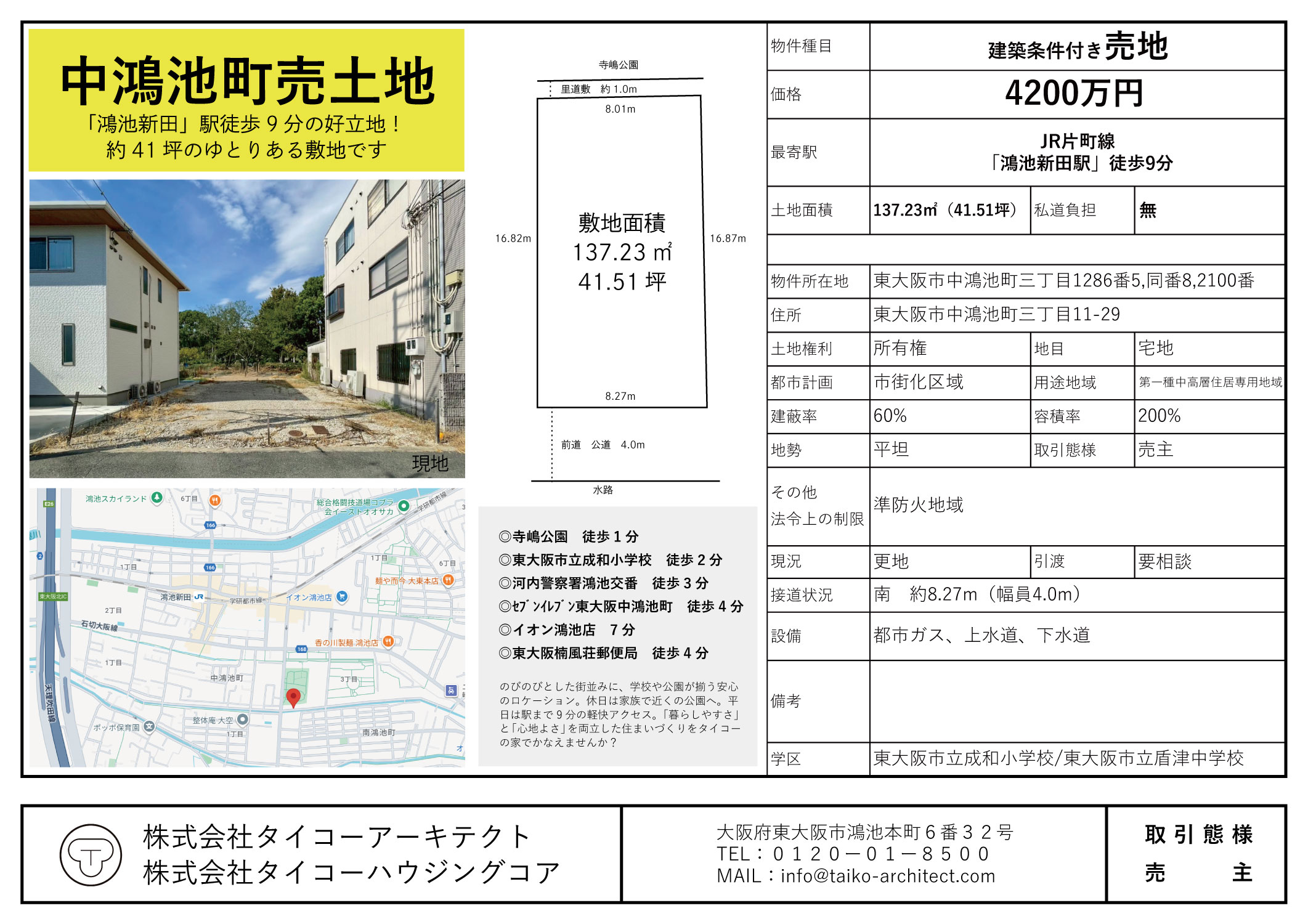 | 交通 | JR片町線「鴻池新田駅」徒歩9分 |
