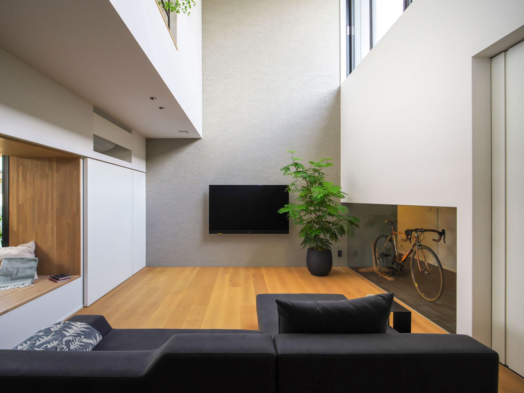 一番は“エントランスと生活空間を完全に切り離しながらも、自分の好きなもの(ロードバイク)と共に暮らす”空間づくりでした。
