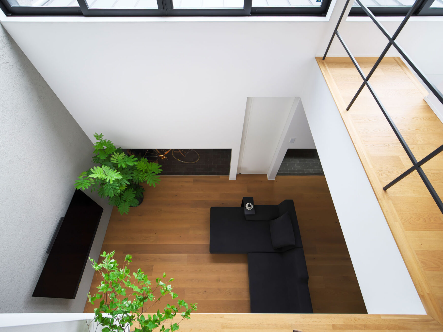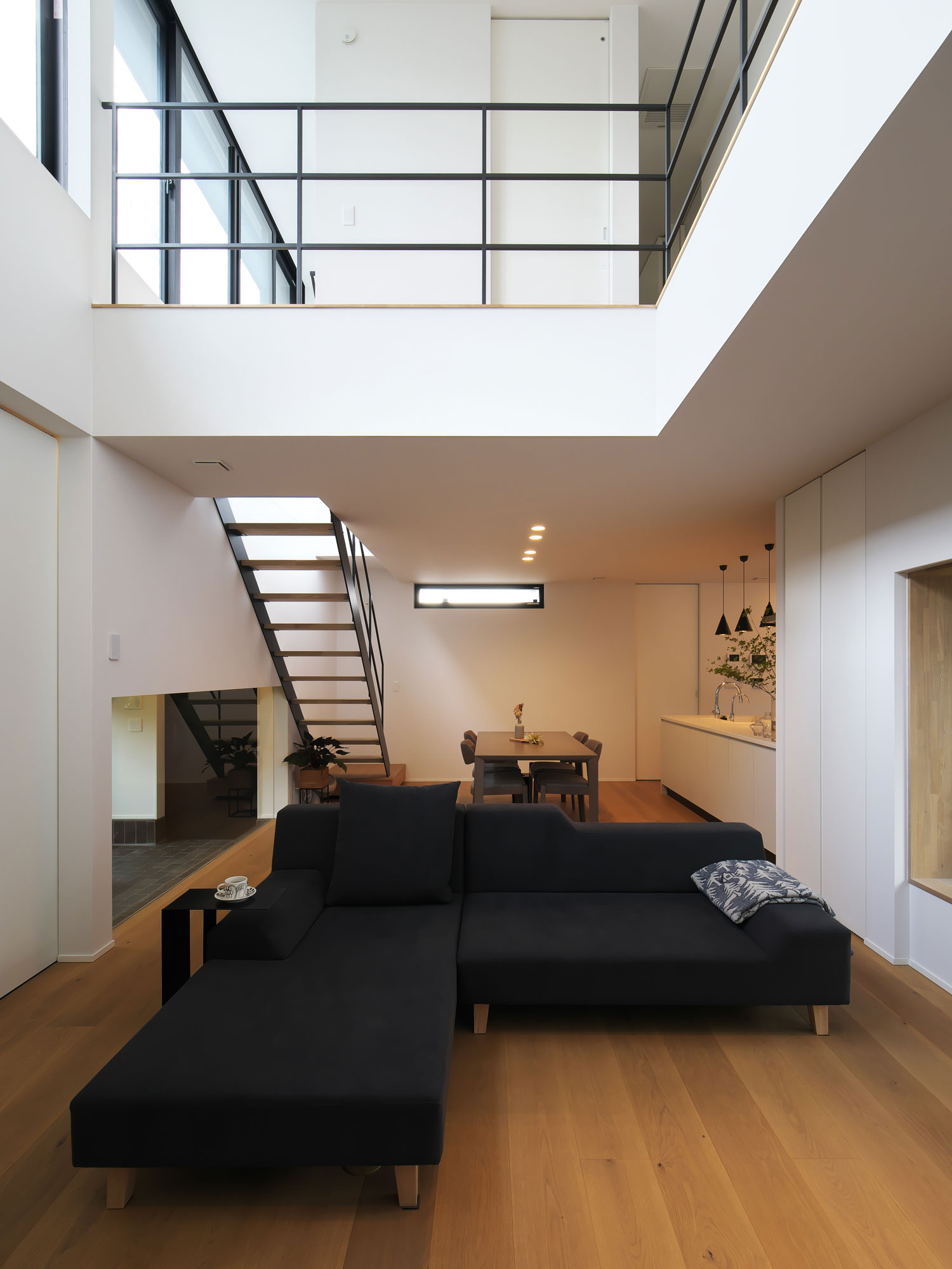 - 吹き抜けの光とウィンドウベンチが、暮らしに穏やかな時間をもたらすLDK。
