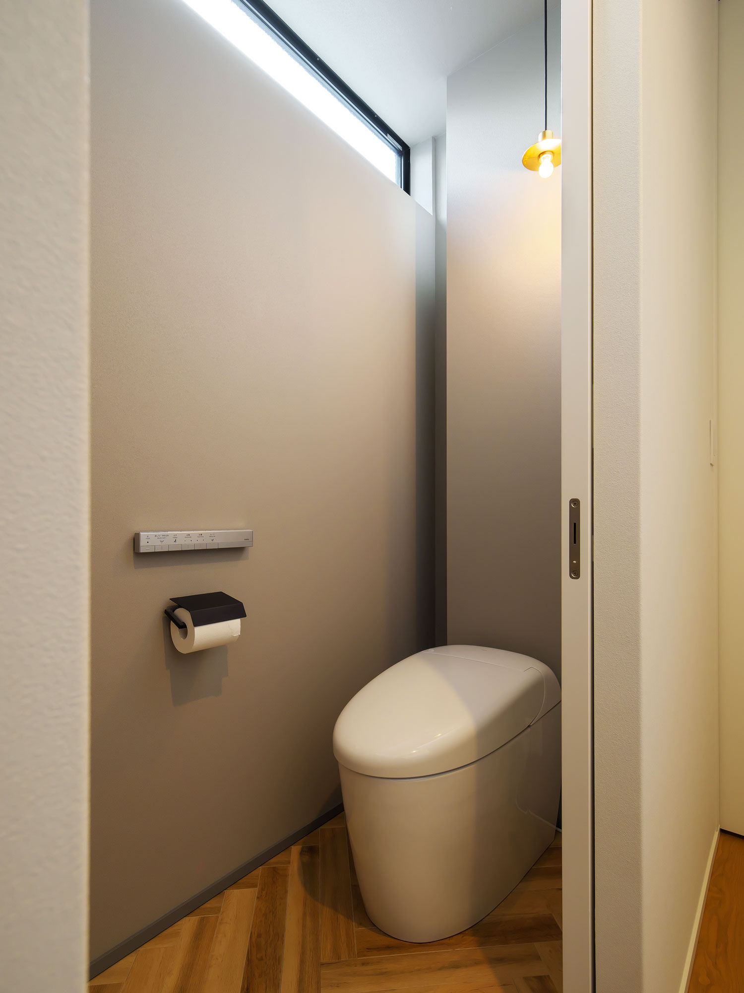 - 南面上部に設けた窓はリビングから階段上部まで続き、家の奥まで自然光で明るく。