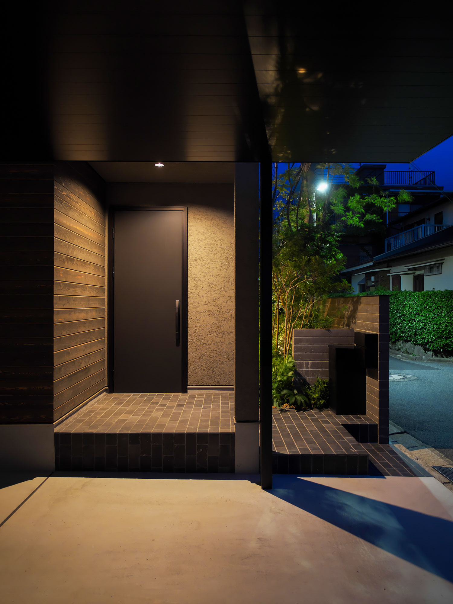 - 塀でプライバシーを確保しながらも、植栽越しに内部の光が感じられる設計。