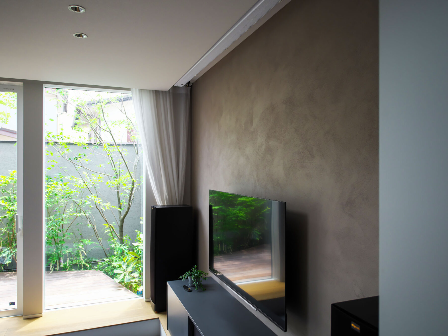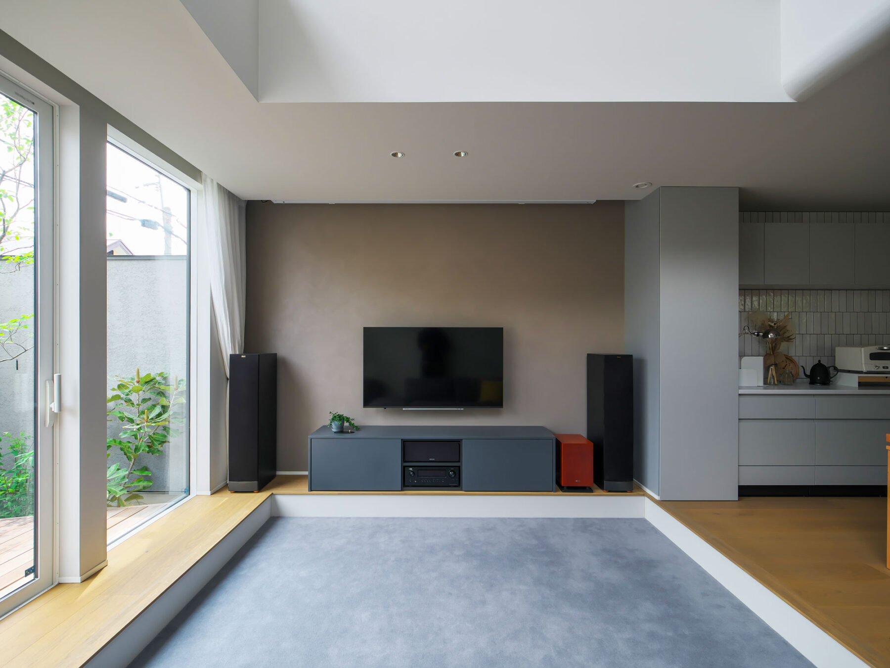 • シアター設備にも配慮した計画。テレビ背面壁はポーターズペイントをご夫婦で塗装。