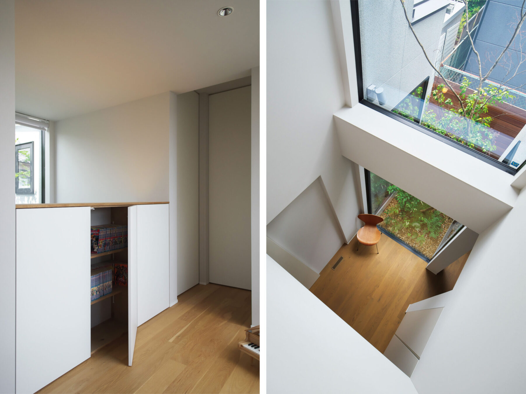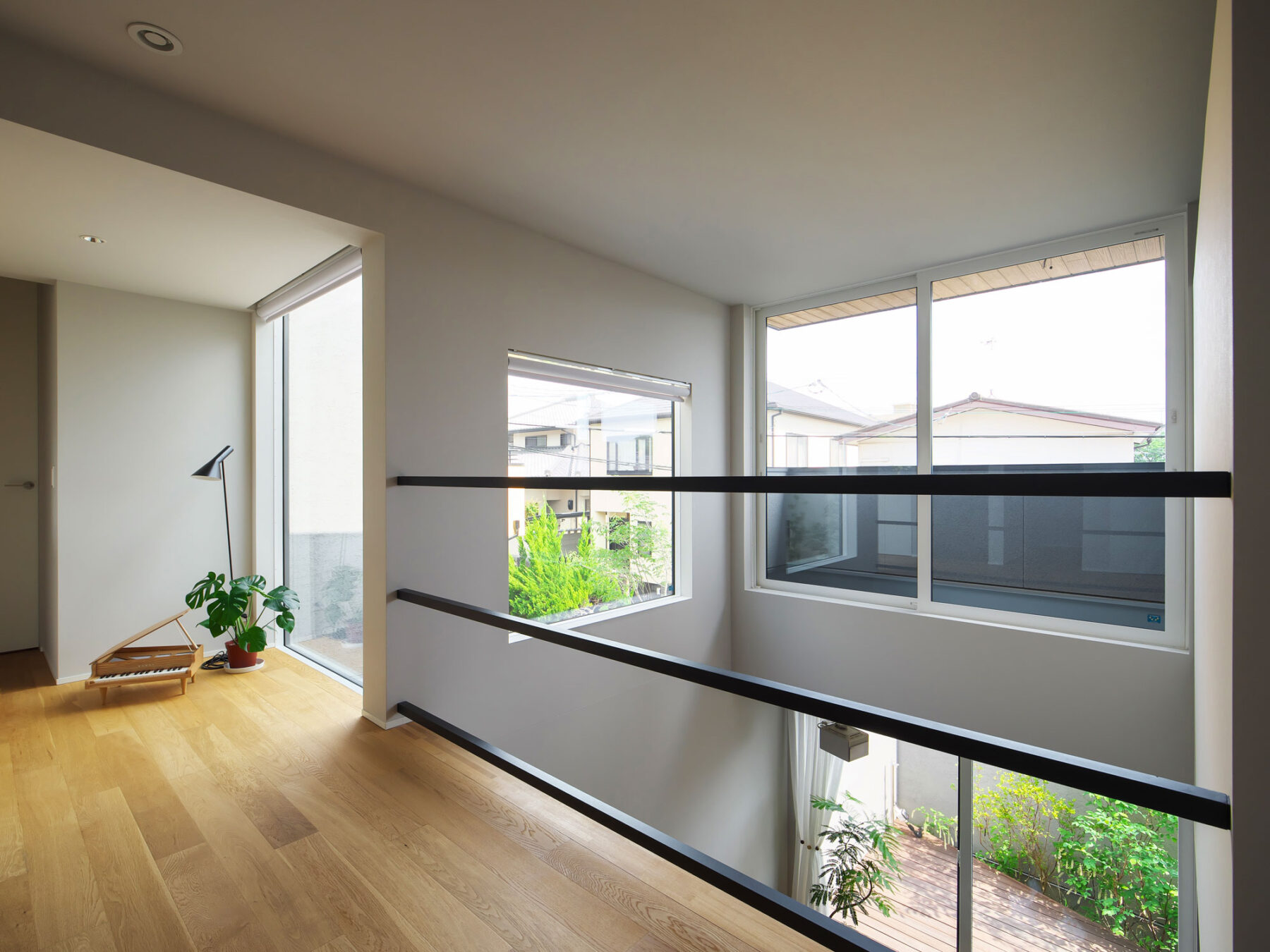 • 吹き抜けに面した2階ホールは、大きな開口部から柔らかな自然光が差し込みます。