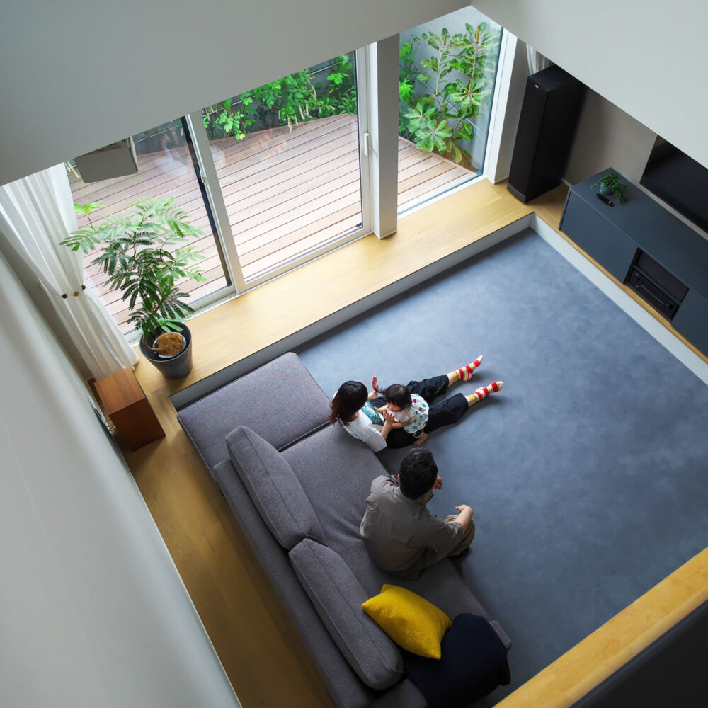 奥さま:私は“床に座ってくつろげる空間”が好きで、モデルハウス(Room)のような段下がりのリビングの雰囲気に惹かれました。