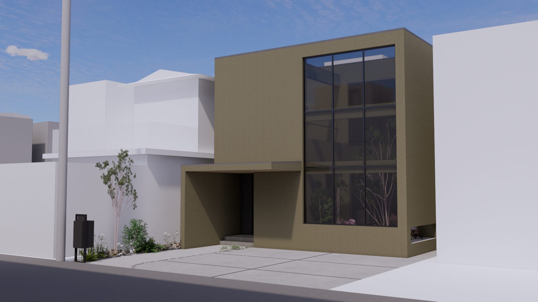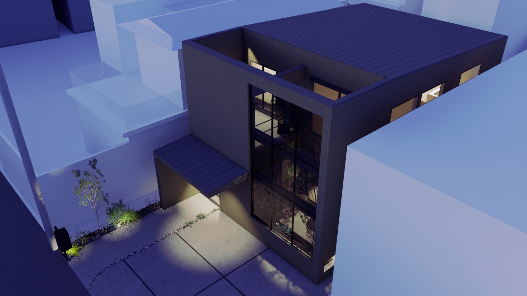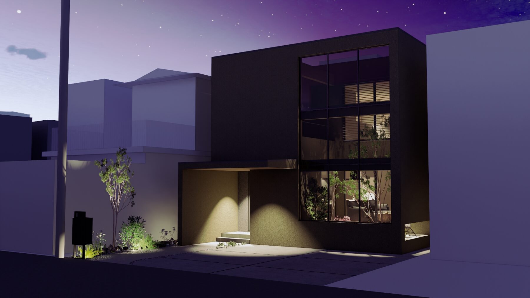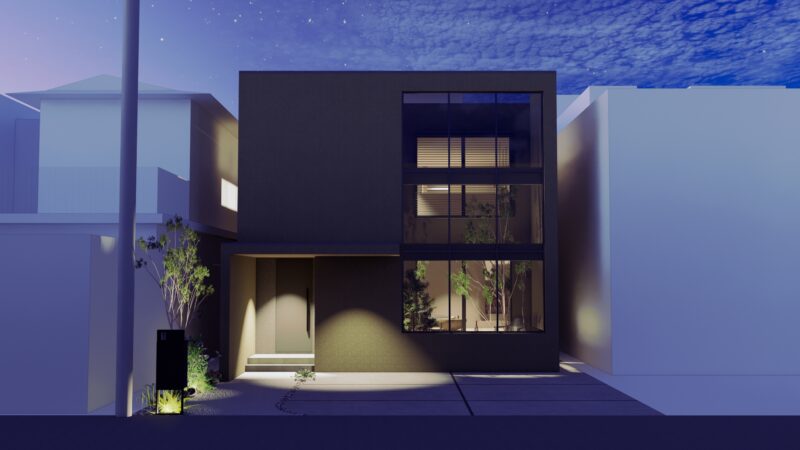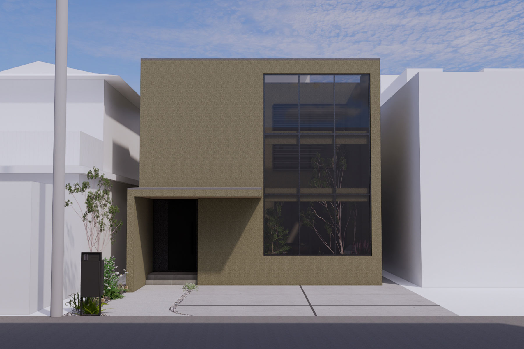 無駄を削ぎ落としたシンプルなキューブデザインの2階建て都市型パッシブデザインハウス。